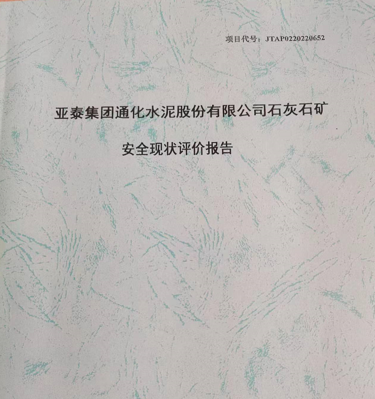 JTAP0220220652-亞泰集團通化水泥股份有限公司石灰石礦安全現(xiàn)狀評價項...