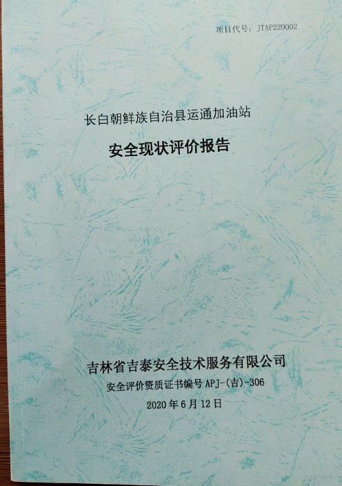 JTAP220002--長(zhǎng)白朝鮮自治縣運(yùn)通加油站安全現(xiàn)狀評(píng)價(jià)