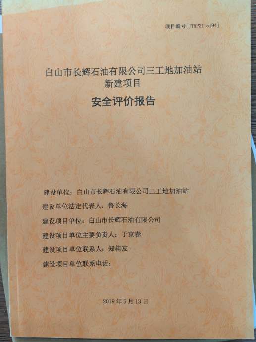 JTAP2115194--白山市長輝石油有限公司三工地加油站新建項(xiàng)目(加油部分)