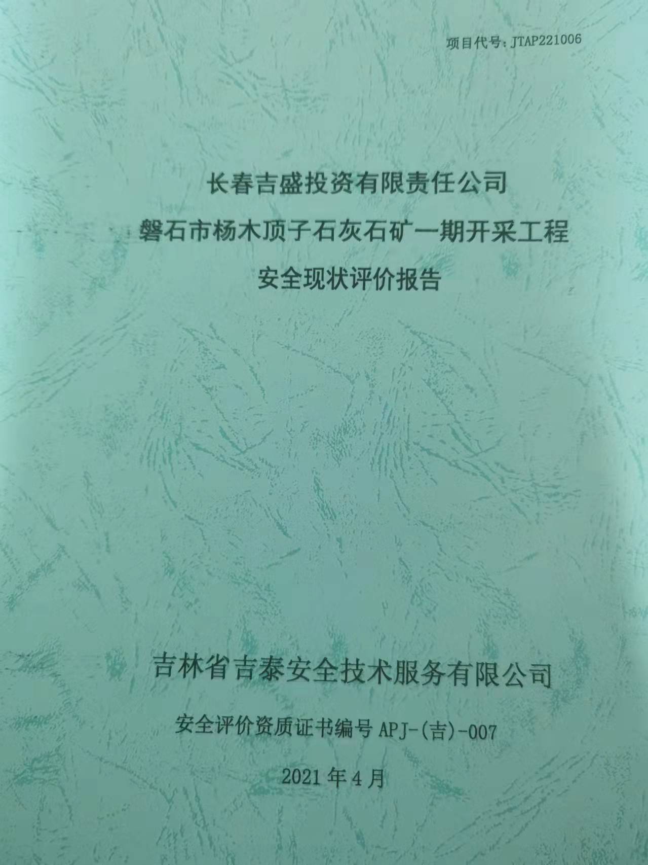 JTAP221006--長春吉盛投資有限責(zé)任公司磐石市楊木頂子石灰石礦一期開采工...