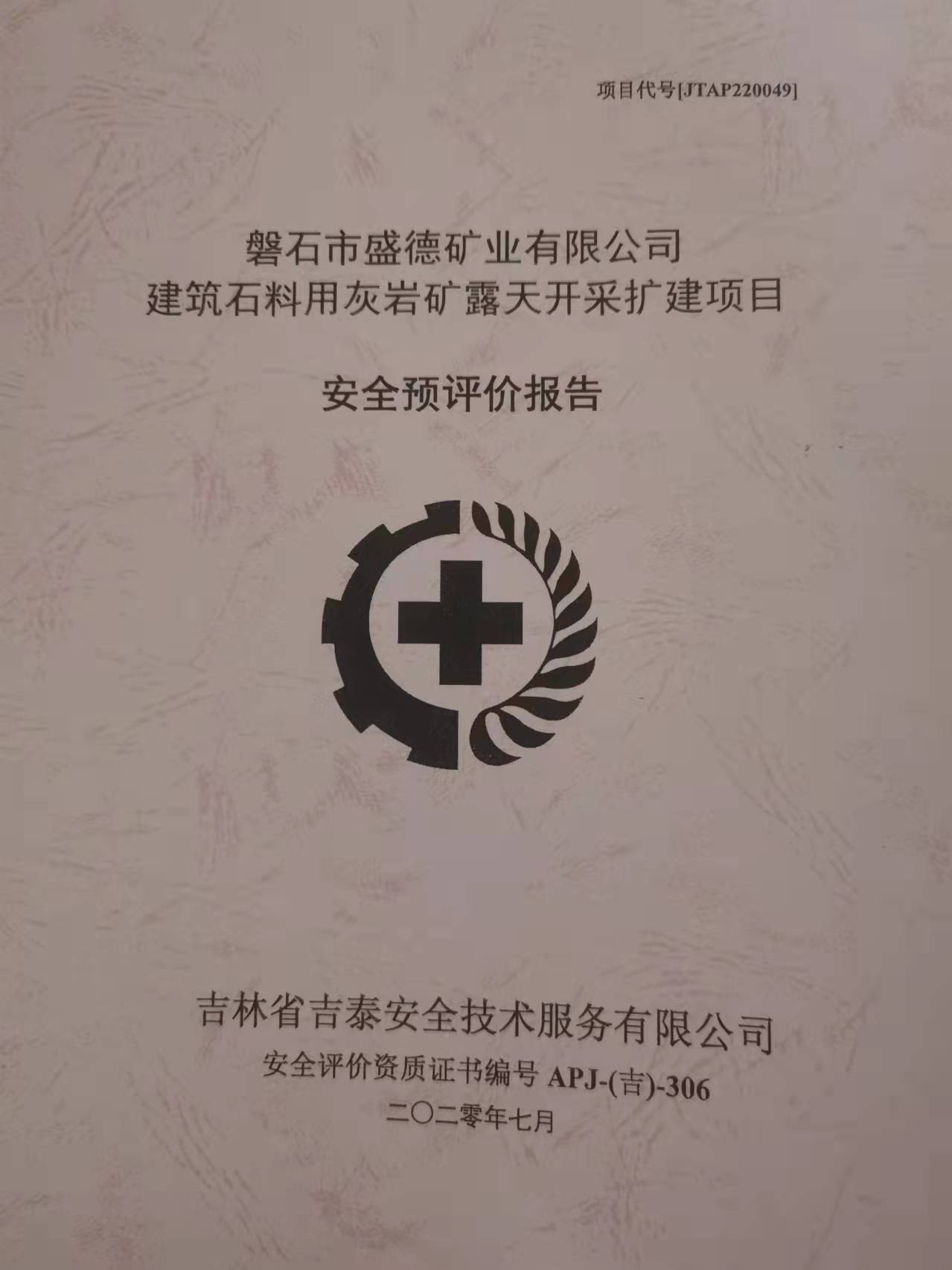 JTAP01210371吉林省長春市羊圈頂子水泥用灰?guī)r礦擴(kuò)建項(xiàng)目安全預(yù)評(píng)價(jià)
