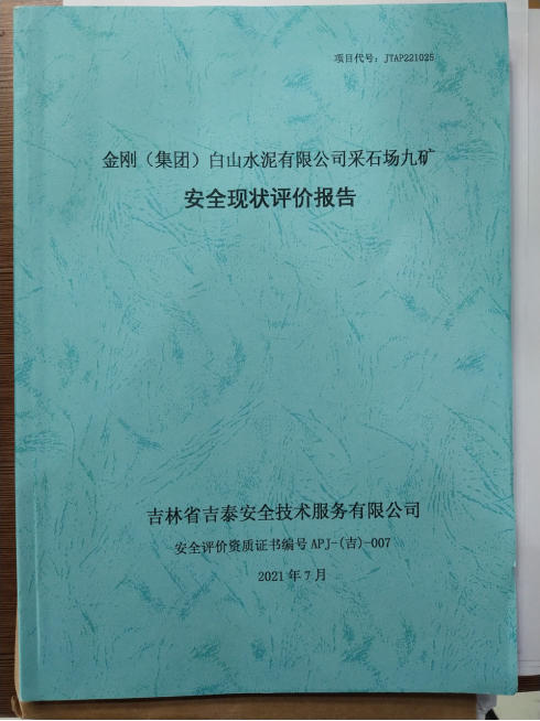 JTAP221025--金剛(集團(tuán))白山水泥有限公司采石場(chǎng)九礦安全現(xiàn)狀評(píng)價(jià)