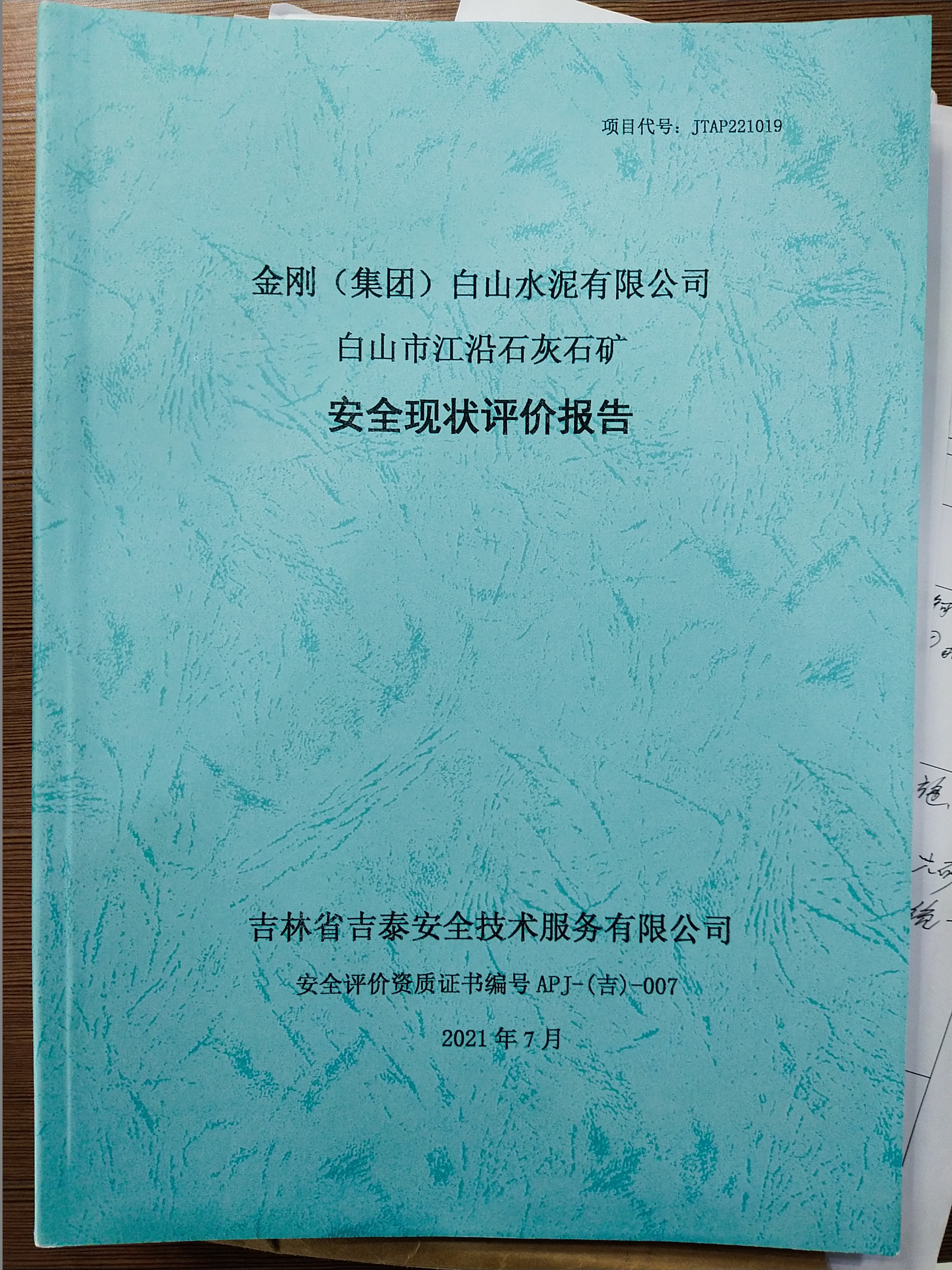 JTAP221019--金剛(集團(tuán))白山水泥有限公司白山市江沿石灰石礦安全現(xiàn)狀評(píng)...