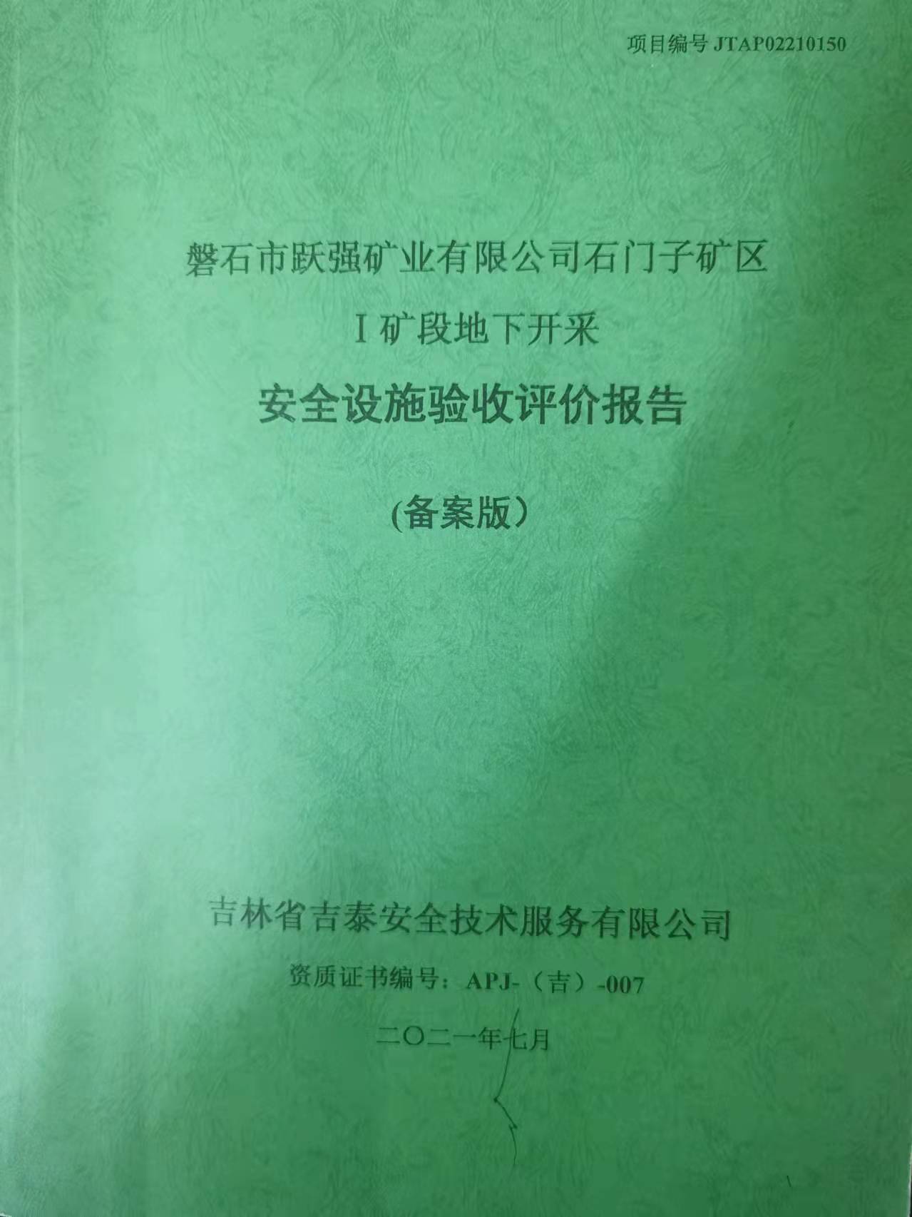 JTAP02210150--磐石市躍強(qiáng)礦業(yè)有限公司石門子礦區(qū)Ⅰ礦段地下開采驗(yàn)收