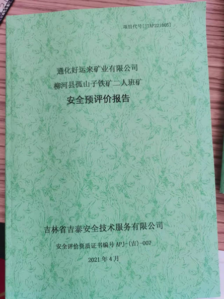 JTAP221005--通化好運(yùn)來(lái)礦業(yè)有限公司柳河縣孤山子鐵礦二人班礦安全預(yù)評(píng)價(jià)