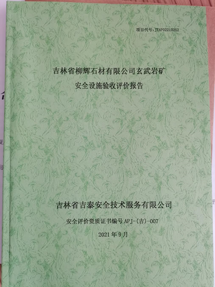 JTAP02210252--吉林省柳輝石材有限公司玄武巖礦安全驗(yàn)收評(píng)價(jià)