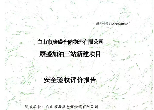 JTAP03210339白山市康盛倉(cāng)儲(chǔ)物流有限公司康盛加油站新建項(xiàng)目安全驗(yàn)收評(píng)價(jià)