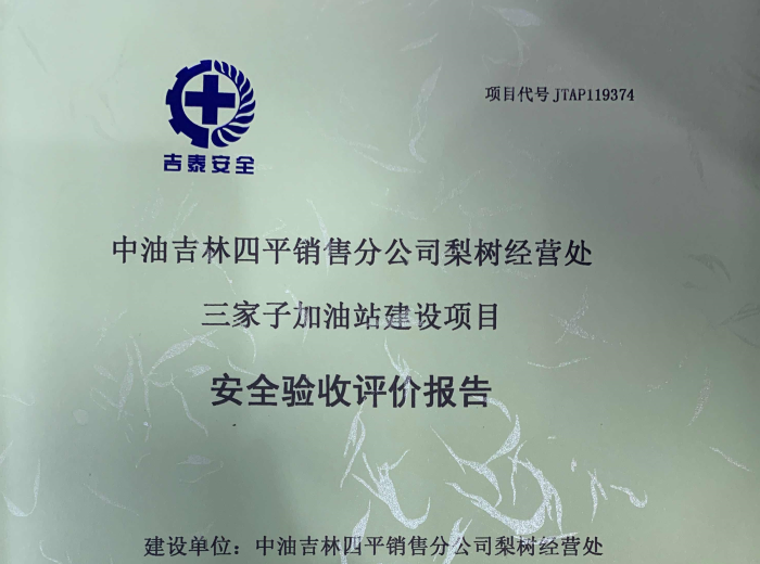 JTAP119357--中油吉林四平銷售分公司梨樹經(jīng)營處東河加油站建設(shè)項(xiàng)目安全驗(yàn)...