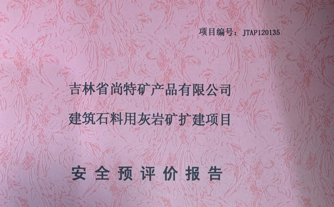JTAP120135--吉林省尚特礦產(chǎn)品有限公司建筑石料用灰?guī)r礦擴建項目安全預評...