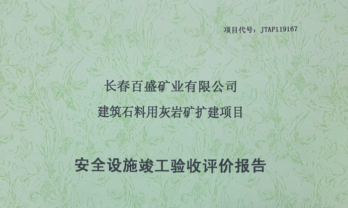 JTAP119167--長(zhǎng)春百盛礦業(yè)有限公司建筑石料用灰?guī)r礦擴(kuò)建項(xiàng)目安全設(shè)施竣工...