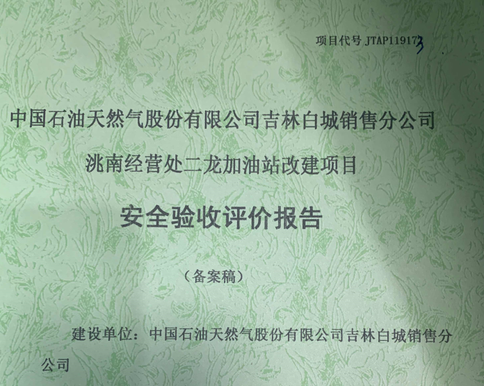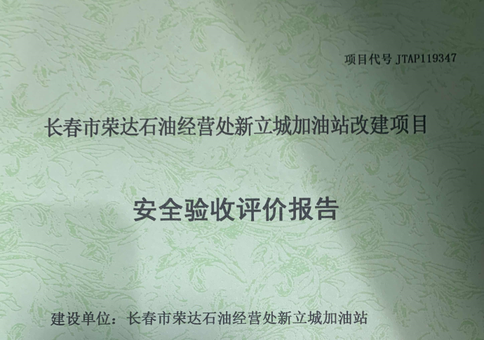 JTAP119347--長(zhǎng)春市榮達(dá)石油經(jīng)營(yíng)處新立城加油站改建項(xiàng)目安全驗(yàn)收評(píng)價(jià)