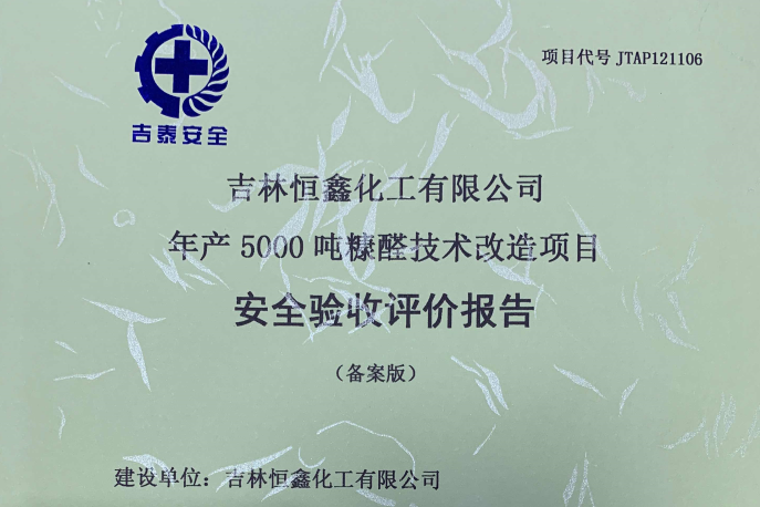JTAP121106--吉林恒鑫化工有限公司年產(chǎn)5000噸糠醛技術(shù)改造項(xiàng)目安全驗(yàn)...