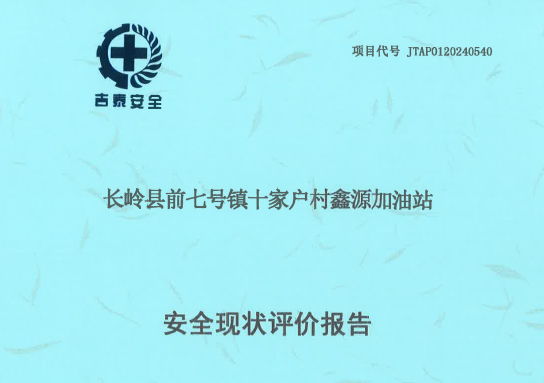 JTAP0120240540-長(zhǎng)嶺縣前七號(hào)鎮(zhèn)十家戶村鑫源加油站安全現(xiàn)狀評(píng)價(jià)