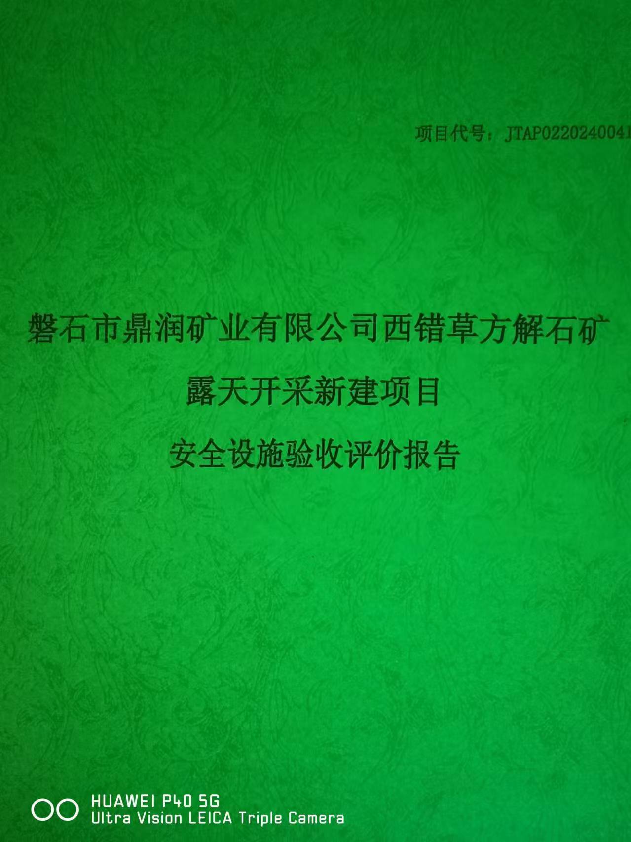 JTAP0220240041-磐石市鼎潤礦業(yè)有限公司西錯草方解石礦新建項目安全設(shè)...
