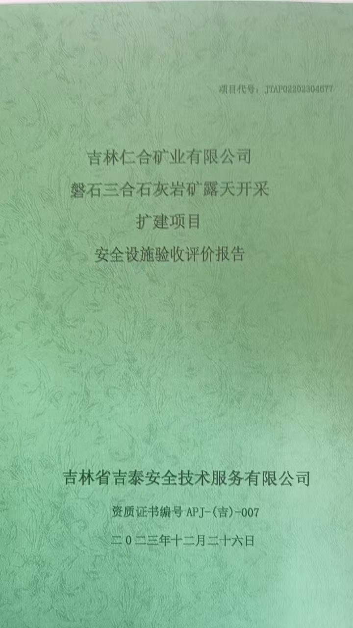 JTAP0220230677-吉林仁合礦業(yè)有限公司磐石三合石灰?guī)r礦安全設(shè)施驗收評...