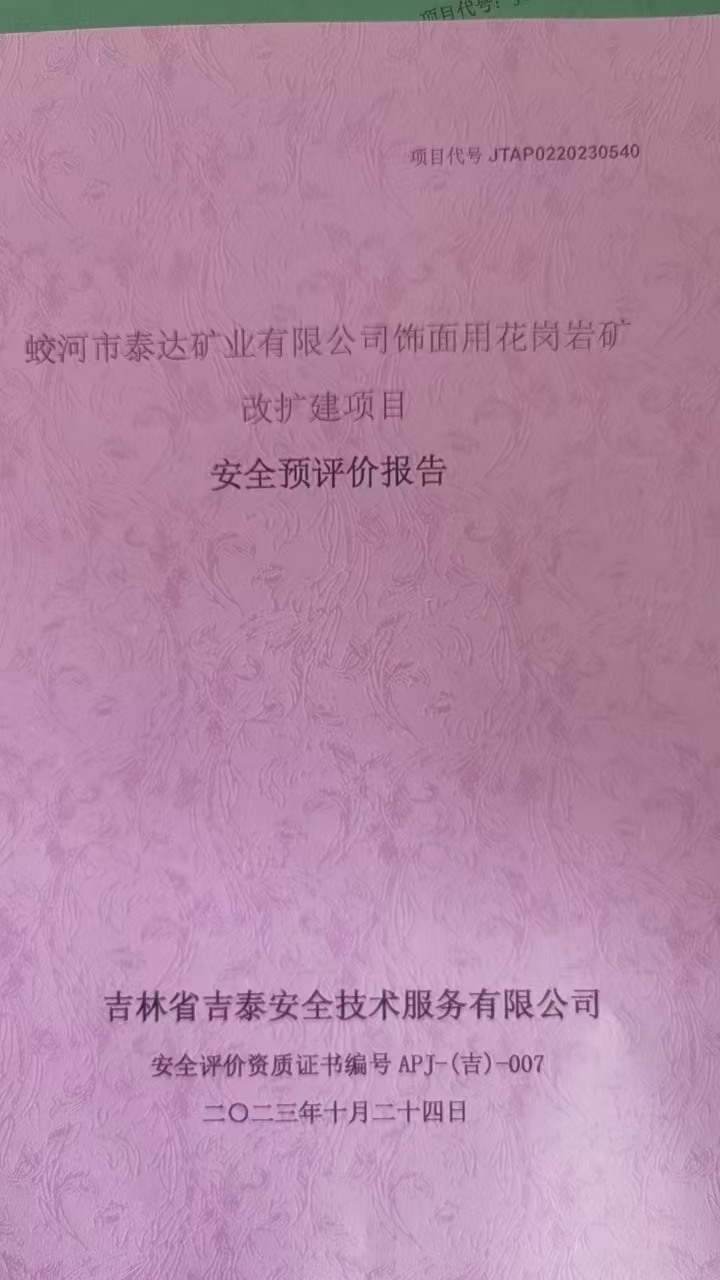 JTAP0220230540-蛟河市泰達礦業(yè)有限公司飾面用花崗巖礦擴建項目安全預(yù)...