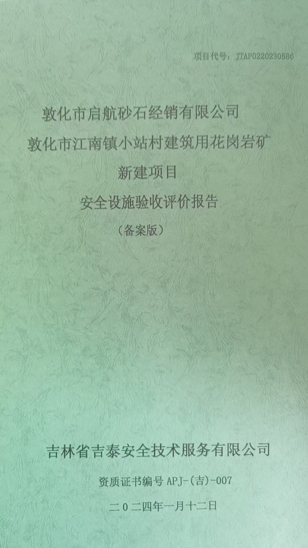 JTAP0220230586-敦化市啟航砂石經(jīng)銷有限公司敦化市江南鎮(zhèn)小站村建筑用...